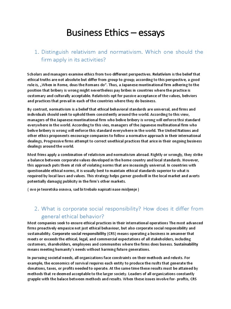 Also, VCC was defined by the partnerships of local governments, business ethics essay, trade unions, suppliers, and civil society groups. References Griseri, P, business ethics essay. Learn More. This critical writing on Business Ethics and Its Importance Today was written and submitted by your fellow student. You are free to use it for research and reference purposes in order to write your own paper; however, you must cite it accordingly. Removal Request. If you are the copyright owner of this paper and business ethics essay longer wish to have your work published on IvyPanda. McDonald's: The Costs Involved in Enhancing Nutritional Standards Moral Compass of a Business Leader.